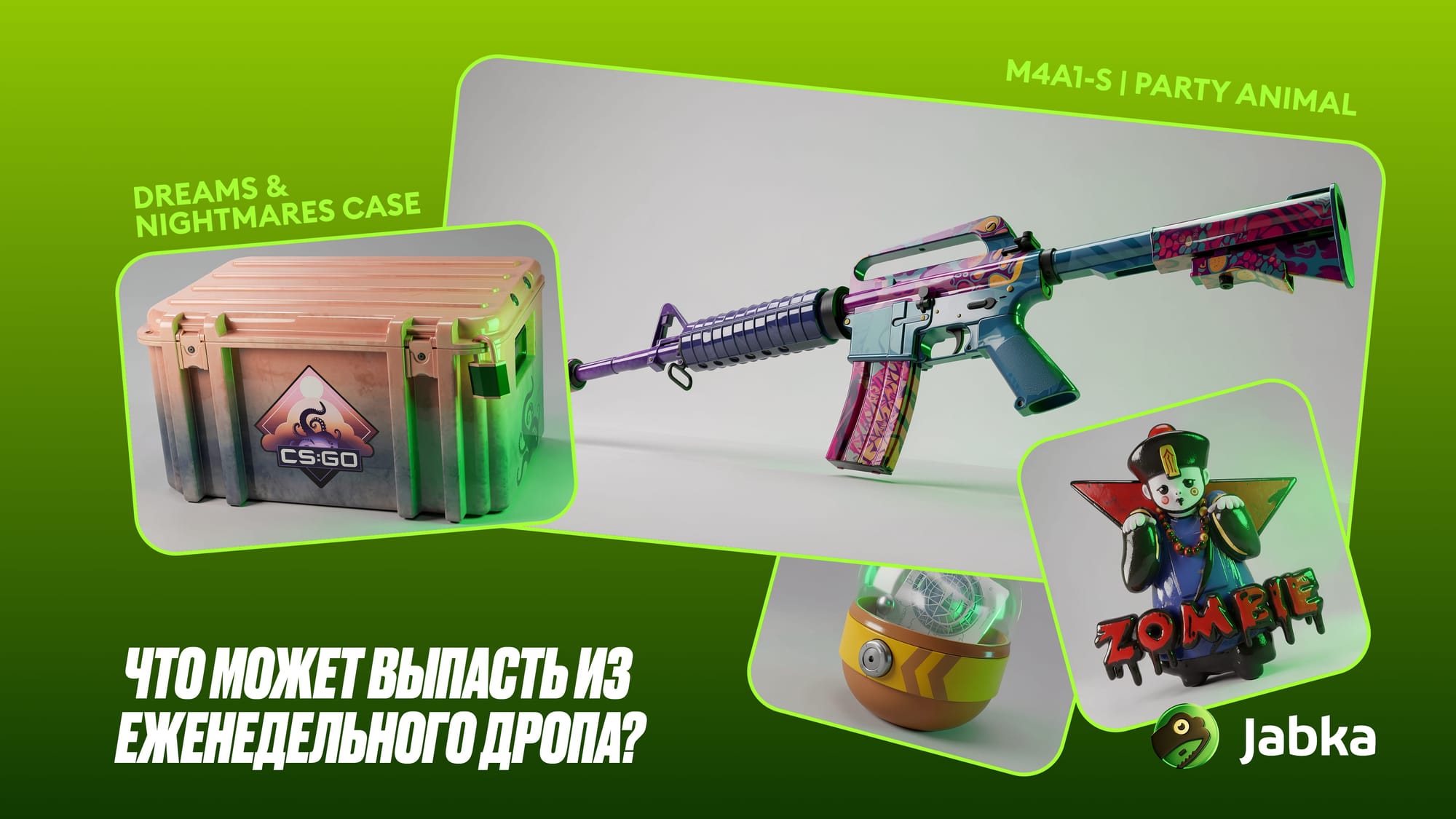 На данный момент с еженедельного дропа в КС 2 выпадают: кейсы, скины, граффити и капсулы со стикерами.