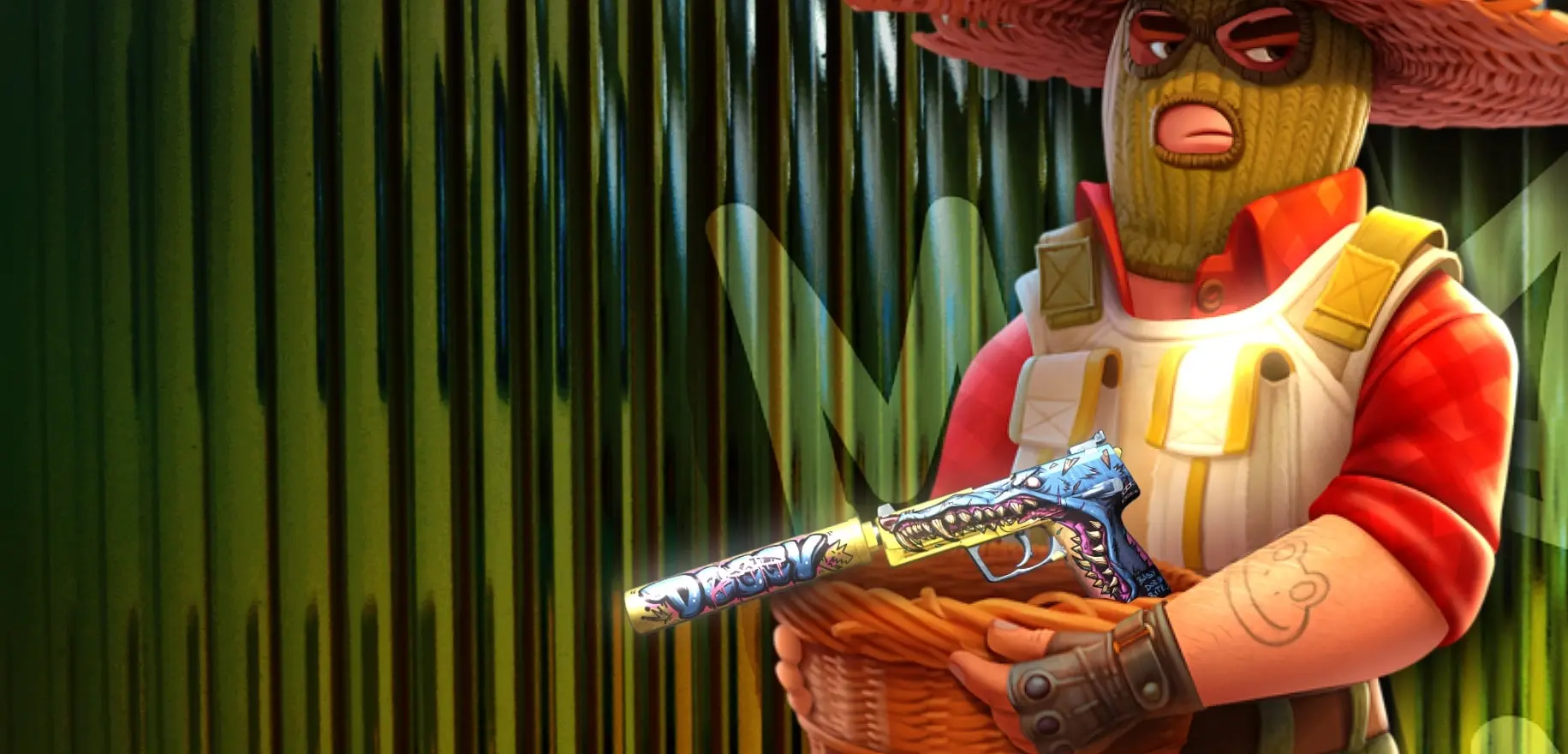 - USP-S | Monster Mashup – еще один представитель дорогих скинов на ЮСП, который не так сильно кусается по цене. Во-первых, отлично подходит в зеленый сет, во-вторых, выглядит очень сочно, особенно в лучах на солнечном Мираже. Найти подобный можно от $14.30 до $72.87 прямо сейчас на JABKA.
