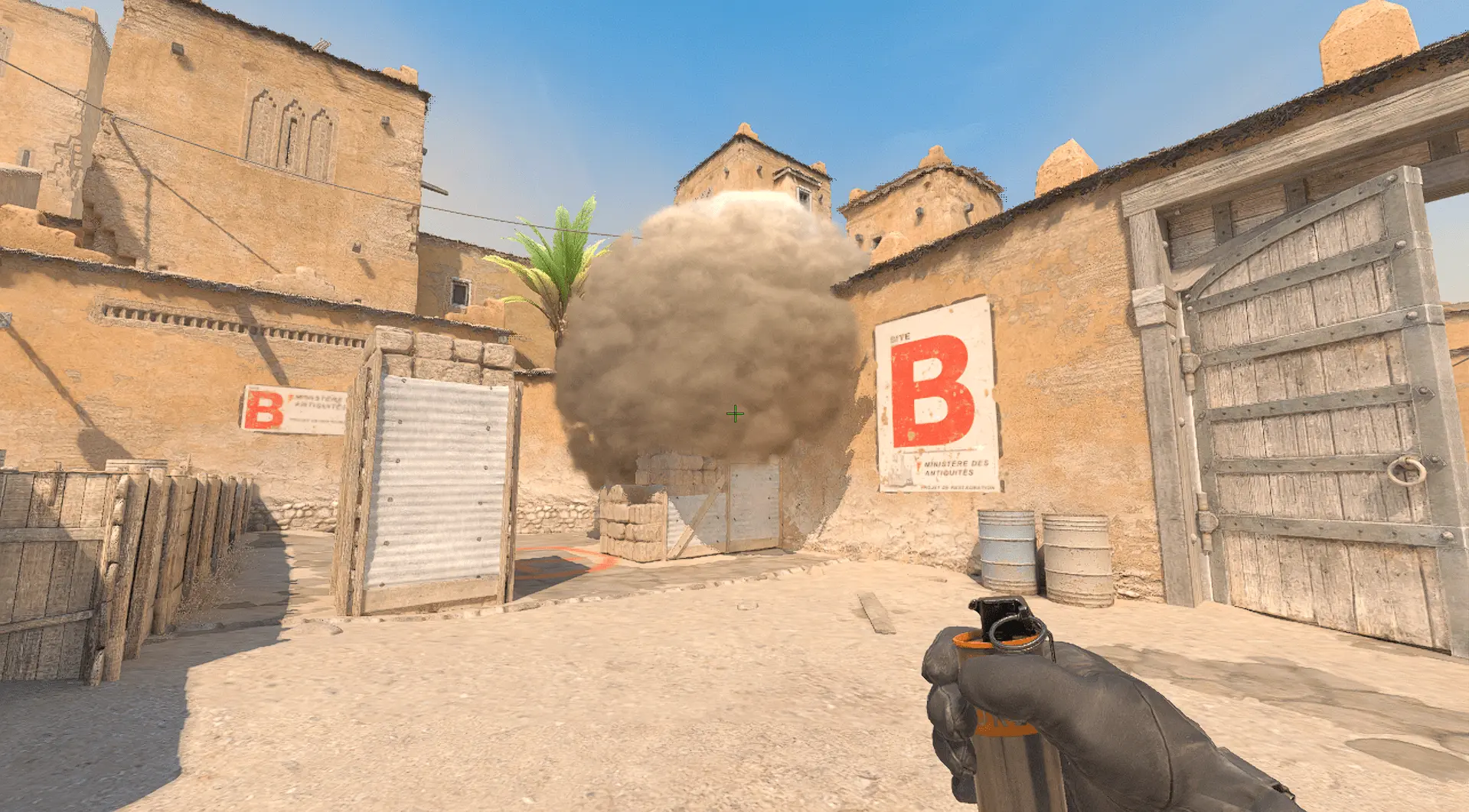 Еще одним полезным смоком для того, чтобы занять B плент, конечно же, становится смок в окно со входа в тунель. Это достаточно простая граната, с которой вы с легкостью сможете занять сайт со своими тиммейтами и со спокойной душой установить бомбу. Для того, чтобы его кинуть: