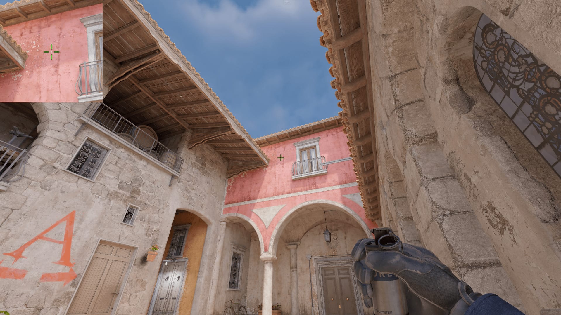 Этот смок – отличный инструмент для сдерживания атак через мидл. Используя его с CT спавна, вы надежно перекрываете обзор атакующим на T рампе, что усложняет им быстрое продвижение к точке A или контроль мидла. Такой смок позволяет защитникам занять более агрессивные позиции или эффективно укрепить оборону на пленте. Для того чтобы он всегда залетал правильно, достаточно знать несколько движений: