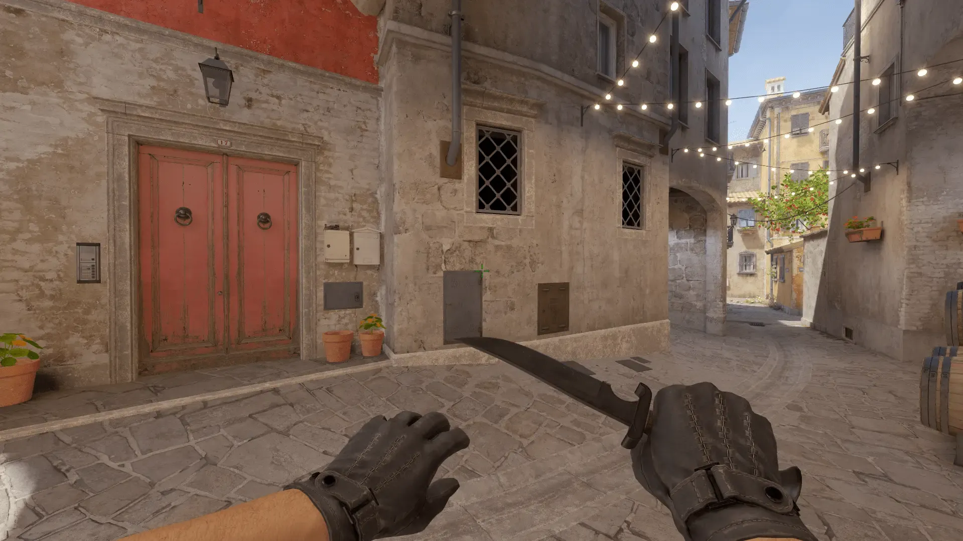 - Ставим прицел на конец металлической палки и отводим его вверх к проводу. Ориентируетесь на скриншот и кидайте дым