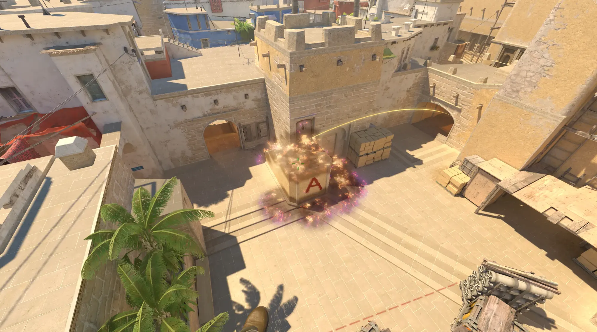 Отлично подойдет если противник стоит на стеирсе и смотрит ковры, тем самым вы поможете команде выйти через них. Для броска нужно: