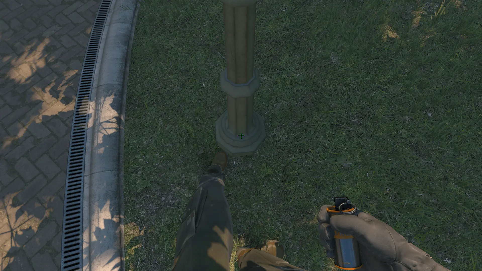- Подходим впритык к третьему фонарю (если начинать счет с дерева) и ставим прицел на одну из внешней стороны фонаря